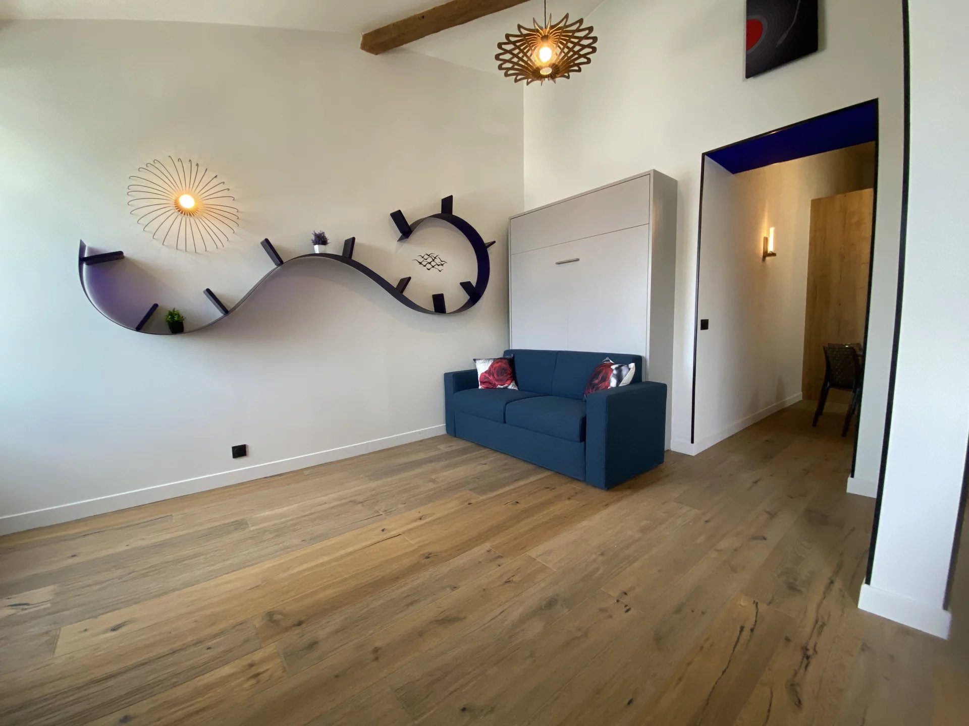 Entièrement réhabilité, l’appartement allie modernité et charme de l’ancien. Dans la cuisine, les équipements haut de gamme côtoient la charpente apparente soigneusement restaurée et un charmant balcon typique ligure « poggiolo ». En avançant dans le bien, le séjour s’ouvre sur la rade de Villefranche, et dévoile des volumes généreux, adaptables selon vos besoins et votre art de vivre. À l’arrière, se situent la salle d’eau ainsi que la chambre dans un esprit toujours raffiné.